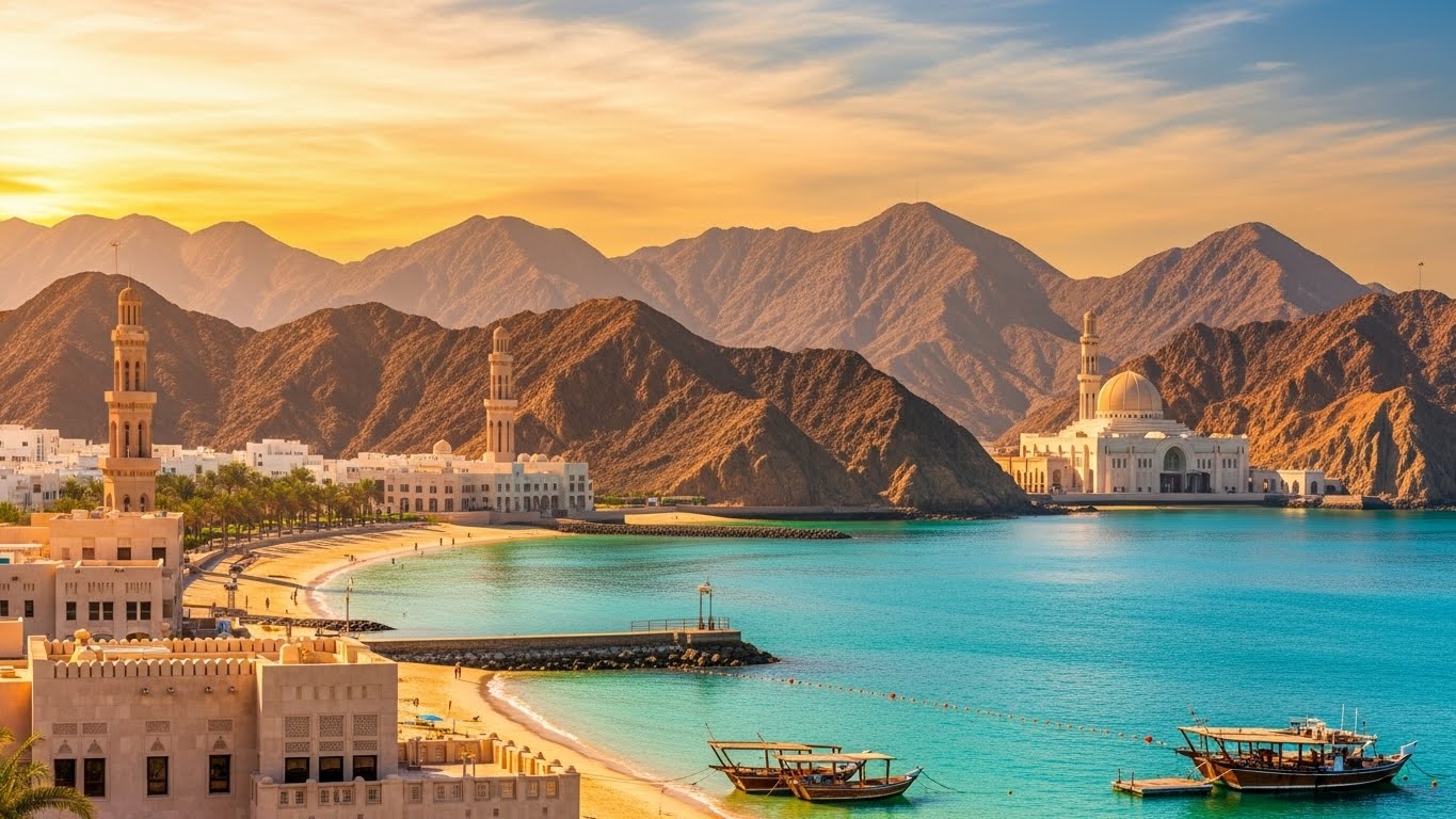 Discover the beauty of Muscat, Oman—where modern sophistication blends with authentic Arabian heritage. Explore golden beaches, enjoy scenic mountain drives, visit the Sultan Qaboos Grand Mosque, stroll through Muttrah Souq, and experience Omani hospitality. A journey filled with culture, relaxation, and breathtaking landscapes.